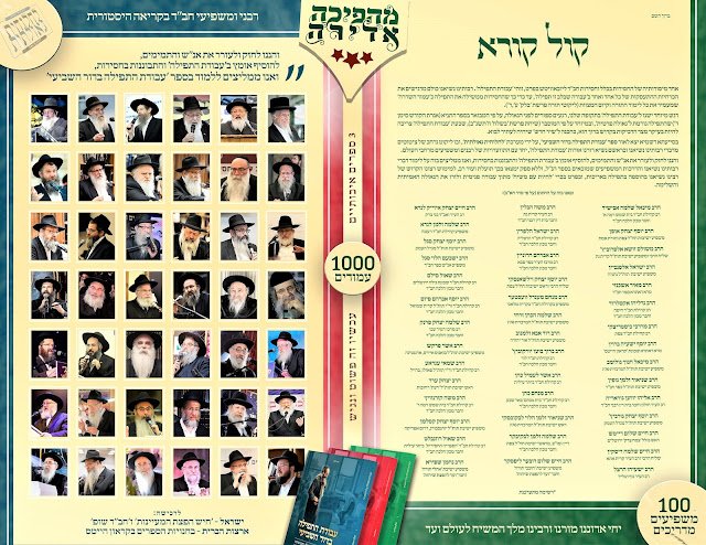 בעקבות הספר המיוחד 'עבודת התפילה בדור השביעי', שיצא לאור על ידי ארגון 'לחלוחית גאולתית', מתפרסמת כעת קריאת קודש היסטורית מרבני ומשפיעי חב"ד ליובאוויטש מכל קצוות הקשת, אודות החשיבות של ההוספה ב'עבודת התפילה' והתבוננות בחסידות • בין היתר, מציינים הרבנים את הספר החדש שיצא לאור, ומעוררים את אנ"ש והתמימים ללמוד את שיחות רבותינו נשיאנו ואת הדרכות המשפיעים שמופיעים בספר, ומחזקים את החשיבות של התפילה באריכות במיוחד בתקופתנו זו, רגע קודם הגאולה • לקריאת הרבנים