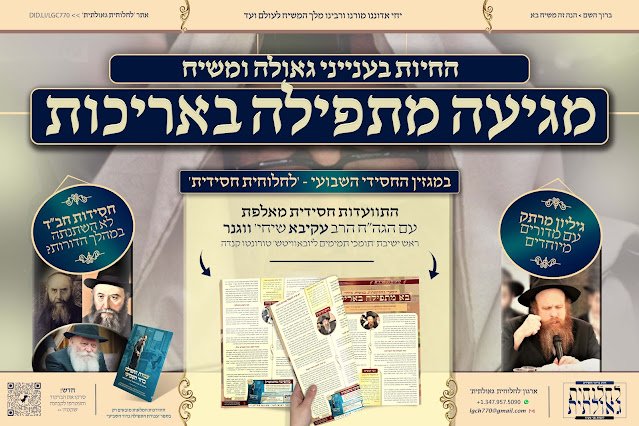 אתר 'חב"ד לייב' מגיש בבלעדיות את המגזין השבועי, לקריאה ולהורדה • כמו בכל שבוע, מערכת המגזין לא מפסיקה להפתיע עם עלון גדוש ומלא בחיות חסידית מחממת, יחד עם הדרכות מעשיות לחיי היום יום • השבוע מתארח הגאון החסיד הרב עקיבא שיחי' ווגנר, שמשמש כראש ישיבת 'תומכי תמימים ליובאוויטש' בעיר טורונטו שבמדינת קנדה • לקריאה והורדת המגזין השבועי