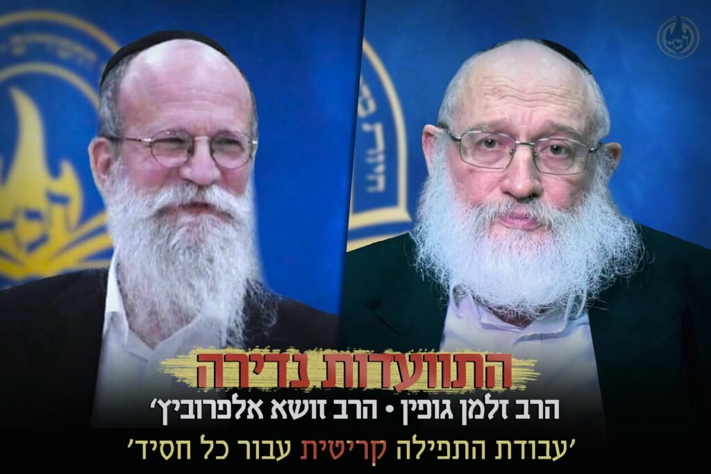 בעקבות ההתוועדות שפורסמה על ידי ארגון 'לחלוחית גאולתית', עם הרב יוסף ישעיה ברוין – רבה של שכונת 'קראון הייטס', התעוררו הרב שניאור זלמן גופין – משפיע ראשי ישיבת תות"ל בכפר חב"ד והרב זושא אלפרוביץ' – משפיע ראשי ישיבת תות"ל בקרית גת, והתוועדו על חשיבות העניין של 'עבודת התפילה' בתקופתנו ובמיוחד בכדי לזרז את התגלות הרבי • מתוך התוועדות אחדות שהתקיימה ב'זום' ביום ט' ניסן, כהכנה לי"א ניסן תשפ"ב – מאה ועשרים שנה להולדת הרבי • לצפייה
