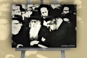 עורך אתר 'חב"ד לייב' מציג תמונה נדירה, בה נראה הרבי מלווה ומחזיק בידו של רבי מרדכי שלמה פרידמן – האדמו"ר מבויאן, במחווה מיוחדת ולא שגרתית