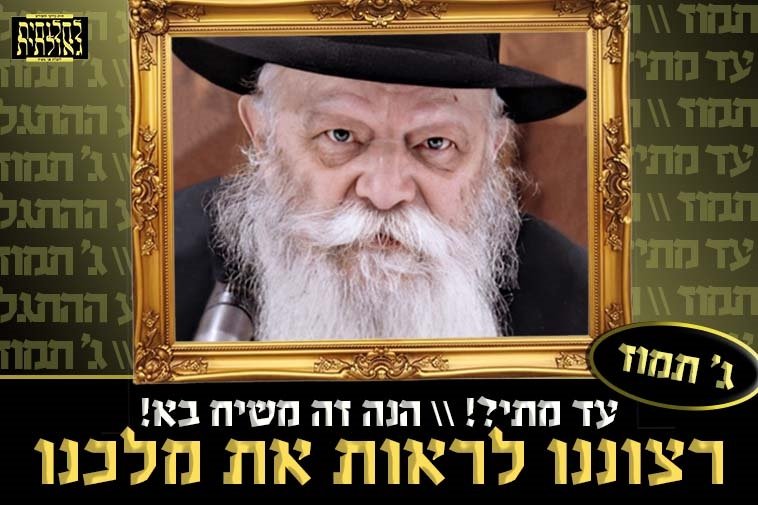 'עם כל זה אחכה לו בכל יום שיבוא': בזמן זה אשר מציינים כבר כמעט שלושים שנה (!) מאז החל ההעלם והסתר הנורא בג' תמוז תשנ"ד ו'עדיין לא נושענו'.. אנו פונים בתפילה ותחינה לקדוש ברוך הוא שיחיש את ביאת המשיח ונזכה לראות במהרה את הרבי • על פי נבואתו של הרבי ש'הנה זה משיח בא', אנו בטוחים בדבריו ללא כל ספק ו'דבר מדבריו אחור לא ישוב ריקם', ואנו נמשיך ונתעקש בכל כוחנו למען ההתגלות המושלמת, אז נתראה פנים בפנים • 'כשם שעד עתה היה מונח אצל כל אחד ואחד מאיתנו שהרבי יוליכנו לקראת משיח צדקנו – צריך להיות מונח כן גם עתה. והמאורע שאירע כו' – אינו אלא לעיני בשר שלנו, ואינו אלא ניסיון בלבד (אחד הניסיונות דחבלי משיח שצריכים להיות קודם ביאת גואל צדק), שכל ענינו הוא שמעלים ומסתיר על האמת' • לדברי הרבי ולתמונה נדירה
