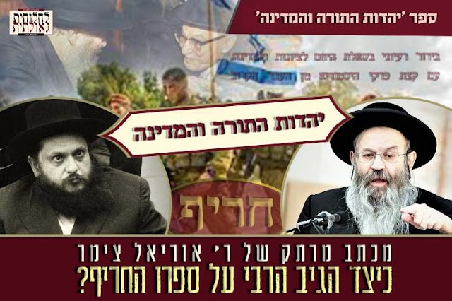 'זה נכתב ברכות מידי': בעקבות פרסום הספר 'יהדות התורה והמדינה' לקריאה אונליין במלואו באתרנו (בה מוסבר בבהירות רבה את השקפת היהדות החרדית על היחס לציונות ולמדינת ישראל), הגיעו למערכת אתר 'חב"ד לייב' תגובות רבות על אמינותו של הספר ותכניו. על כן אנו מפרסמים מכתב מעניין בנושא זה מכ"ג מנחם אב תש"כ (שנה לאחר הוצאת הספר לאור), שכתב מחבר הספר החסיד ר' אוריאל ע"ה צימר לידידו החסיד ר' טוביה שיחי' בלוי – מזקני חסידי חב"ד, ובו הוא מתאר את תגובתו החריפה של הרבי בנוגע להוצאת ספר זה, לאחר שהרבי עבר על הספר, ועל רצונו של הרבי שיופץ ספר זה • המכתב פורסם בחוברת 'לקט ופרט' חלק ג' עמוד פג • לקריאה