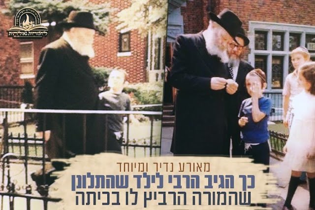 'אל תגעו במשיחי': מערכת אתר 'חב"ד לייב' שמחה להגיש לפניכם צרור תמונות מיוחדות ונדירות, עם חשיפת מאורע לא שגרתי, בו נראה הרבי צועד יחד עם חייל בצבאות השם, בשביל הכניסה הראשית של בנין 770 • בתמונה שלמעלה, נראה הרבי מעיין בפתק שהגיש הילד ומאחוריו החסיד ר' אברהם ע"ה פרשן. בתמונה שלמטה, נראה הרבי צועד יחד עם החייל בצבאות השם • כיצד 'עקף' הילד את המזכירות והצליח להעביר פתק לרבי? ומה הייתה ההצעה של הרבי עבור המלמד שהרביץ ולא תהיה לו פרנסה אם יפטרו אותו? • לתמונות