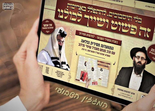 צוות אגף ההוצאה לאור של ארגון 'לחלוחית גאולתית' מגיש את המגזין האיכותי 'לחלוחית חסידית', שכמו בכל שבוע לא מפסיק להפתיע ולהתחדש, בנוסף למדורים הקבועים • מה מצפה לנו השבוע במגזין? מסה מרתקת ומעשית של הרב מנחם מנדל פרלוב, שמשמש כמשפיע בישיבת חב"ד בווסטצ'סטר שבניו יורק, על הצורך בהשקעה יומיומית בעבודת התפילה ועל הדרכים הפרקטיות ליישום יסוד חסידות חב"ד, בשילוב דוגמאות מוחשיות שמרוממות כל אחד להחלטה ברורה: גם אני שייך ויכול להתעסק ב'עבודת התפילה' • לקריאה והורדה