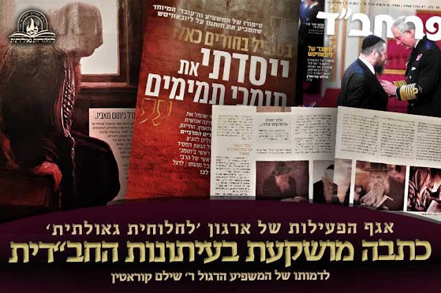 בתפוצה של עשרות אלפי עותקים בעיתונות החב"דית: אגף הפעילות של ארגון 'לחלוחית גאולתית' פרסם אשתקד בעיתון 'כפר חב"ד' כתבה מושקעת ומרתקת על דמותו האדירה של המשפיע הדגול ר' משולם ידידיה גוטליב ('שילם') ע"ה קוראטין (לרגל ה'יארצייט' בה' אלול), ששימש כמשפיע ראשי של ישיבת 'תומכי תמימים' בליובאוויטש ומגדולי ה'עובדים' שהטביע את חותמו על חסידות חב"ד • כתבה זו התפרסמה כחלק בלתי נפרד ממהפיכת ההנגשה הגדולה שעורך ארגון 'לחלוחית גאולתית' בנושא של 'עבודת התפילה' והוספת חיות בדרכי החסידים, ובהם מפיץ אגף הפעילות של הארגון כתבות תוכן איכותיות בעיתוני חב"ד מכל קצוות הקשת • לצפייה בכתבה המלאה