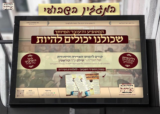 הדמות לקבלת השראה להיות עובד השם אמיתי: צוות מערכת המגזין השבועי 'לחלוחית חסידית', מגיש מוסף מושקע ומעניין (בנוסף למגזין השבועי) על תולדות חייו וקווים לדמותו הייחודית של מי ששימש כמשפיע הראשי של ישיבת 'תומכי תמימים' בעיירה ליובאוויטש ואחד מגדולי ה'עובדים', שחינך דורות של חסידים במיומנות ואכפתיות נפלאים, הלוא הוא הגה"ח ר' שילם(משולם ידידיה גוטליב) ע"ה קוראטין • מוגש לרגל ה'יארצייט' בה' אלול – 'והחי ייתן אל ליבו' • לקריאה והורדת המוסף המושקע