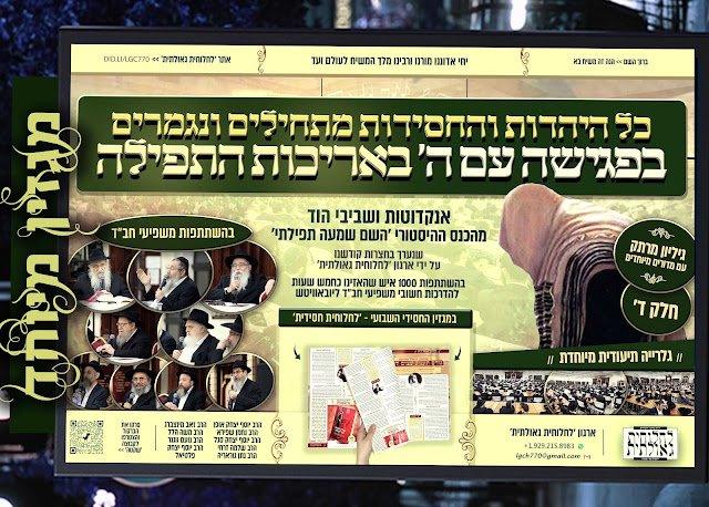 אנו מוציאים לאור חלק רביעי (בהמשך לחלק הראשון, השני והשלישי) של מגזין מיוחד עם שביבי אור ואנקדוטות מהכנס ההיסטורי 'השם שמעה תפילתי' – בנושא ההתבוננות בחסידות בעבודת התפילה, שנערך בחצרות קודשנו על ידי ארגון 'לחלוחית גאולתית', בהשתתפות אלף איש שהאזינו באחוות חסידים כחמש שעות רצופות להדרכות חשובי המשפיעים • בכנס השתתפו המשפיעים: הרב יוסף יצחק אופן, הרב נחמן שפירא, הרב שלמה זרחי, הרב יוסף יצחק סגל, הרב נתן גוראריה, הרב יוסף יצחק פלטיאל, הרב נועם ווגנר, הרב משה הלל והרב זאב מינצברג • לקריאת והורדת מגזין הסיכום הרביעי מהכנס ההיסטורי הקליקו כאן