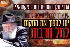 וידאו מיוחד משיחה של הרבי (בקשר למבצע 'שלום הגליל'), בו קובע הרבי שאין צורך להכניס חיילים עמוק לשטח החזית, אלא יש להפוך את השטח לתל חרבות
