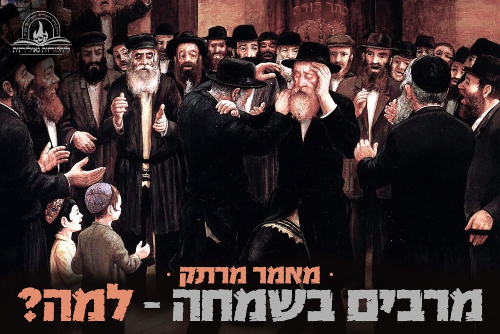 תיאורי השמחה שהיו בקהילות היהודיות בדורות קדומים נעלים באין ערוך מהשמחה השורה בדורנו. בתוך דירה קטנה מועטת חדרים ומרובת נפשות – שרתה שמחה אמיתית; ומה קורה היום בדור השפע?! אנשים רבים שרויים בעגמת נפש וחולשה נפשית ובתור שכזה גם מתעוררות מצוקות ומריבות בתוך התא המשפחתי • מבט מרתק לשמחה החסידית • לקריאה