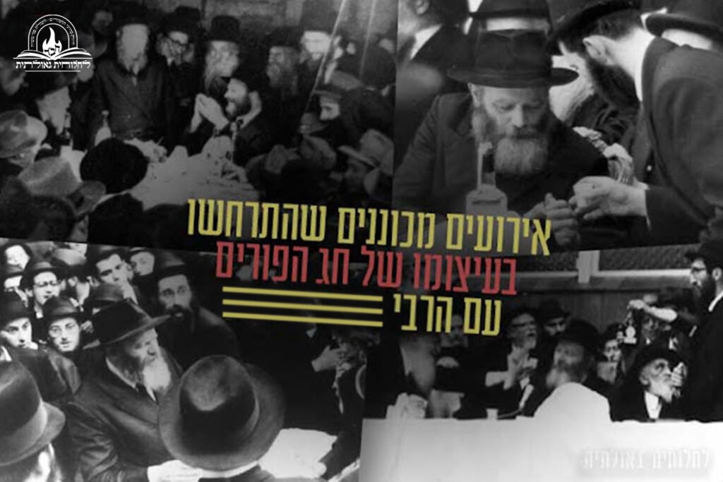 כהכנה לחג הפורים, אנו מגישים אירועים מעניינים ומכוננים שהתרחשו במהלך השנים, בעיצומו של חג הפורים אצל הרבי. רגע לפני ה'משתה ושמחה' עם בני המשפחה, טלו כוסית לחיים והצטרפו אלינו להתוועדות פורים עם מרדכי שבדורנו • הסקירה מתחילה בתיאור התוועדות חג הפורים תשי"ג, ממשיך בהתוועדות פורים תשט"ו, וכלה בהתוועדות חג הפורים בשנת תשט"ז • לכתבה המלאה