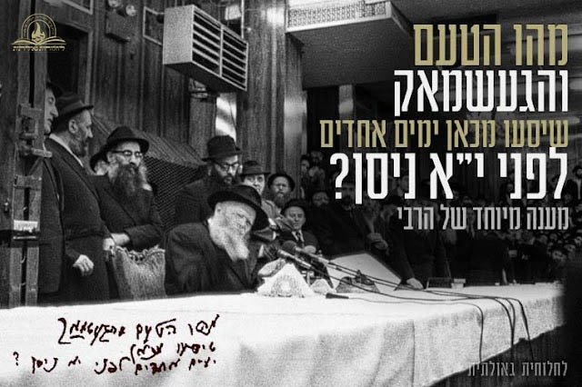 מהו הטעם והגעשמאק שיסעו מכאן ימים אחדים לפני י"א ניסן?