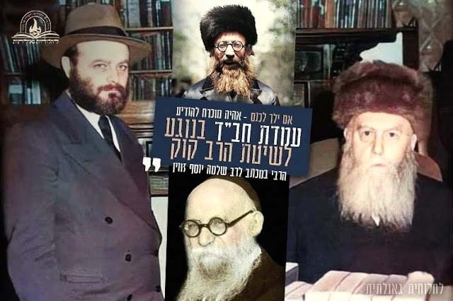 בשנת תש"כ הציעו לרב שלמה יוסף זוין ע"ה, לבוא לכנס הקשור עם הרב אברהם יצחק קוק ע"ה, הרבי הורה לרב זוין בצורה שאינה משתמעת לשני פנים שלא ילך לכנס, משום שאחרת יהיה מוכרח להודיע את עמדתה הברורה של חב"ד בנוגע לשיטת הרב קוק – שיטת 'הציונות הדתית' (כנראה שעצם הליכתו לכינוס שכזה כאחד מגדולי רבני חב"ד – יכולה לתת לגיטימציה ברעיון 'הציונות הדתית', רעיון שמושלל לחלוטין על פי דעת תורה ואף מרחיק את הגאולה וגורם לקורבנות הרבים בישראל), וזה יגרום לתגובה מחוגים נוספים • ומה השיב הרבי על טענת הרב זווין שהרבי הריי"צ החזיק מאוד מהרב קוק והייתכן שעמדת חב"ד היא כנגדו? • לקריאת המכתב