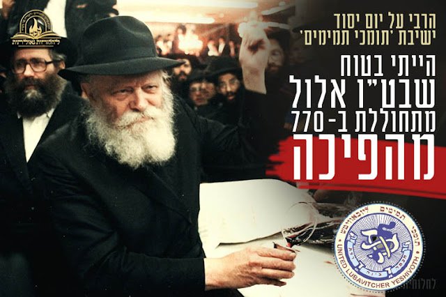 ומובן שענין זה שייך לא רק כאן, אלא גם בכל מקום שיש סניף של ישיבת 'תומכי תמימים', אשר מאיזו סיבה שתהי' לא ערכו התוועדות וחגיגה בקשר עם יום התייסדות הישיבה – ישלימו זאת, כאמור, בהקדם האפשרי. ולא עוד, אלא גם במקום שאין בו סניף דישיבת 'תומכי תמימים', אבל נמצא שם מי שלמד ב'תומכי תמימים', או שקיבל ממי שלמד ב'תומכי תמימים', או שקיבל ממי שקיבל וכו', הארה או הארה דהארה כו', אשר, בימינו אלו, כאו"א מישראל הוא בכלל זה – יש לערוך התוועדות וחגיגה בקשר להפצת התורה והיהדות והמעיינות חוצה, בהתאם לתוכן השפעתה של ישיבת 'תומכי תמימים".