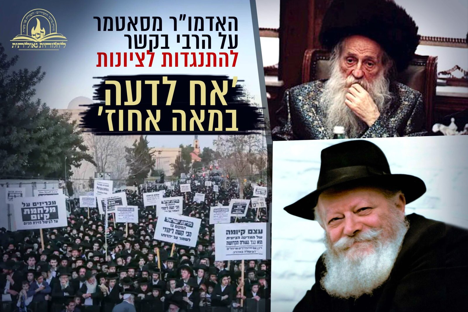 האדמו"ר מסאטמר על הרבי בקשר להתנגדות לציונות: 'אח לדעה במאה אחוז'