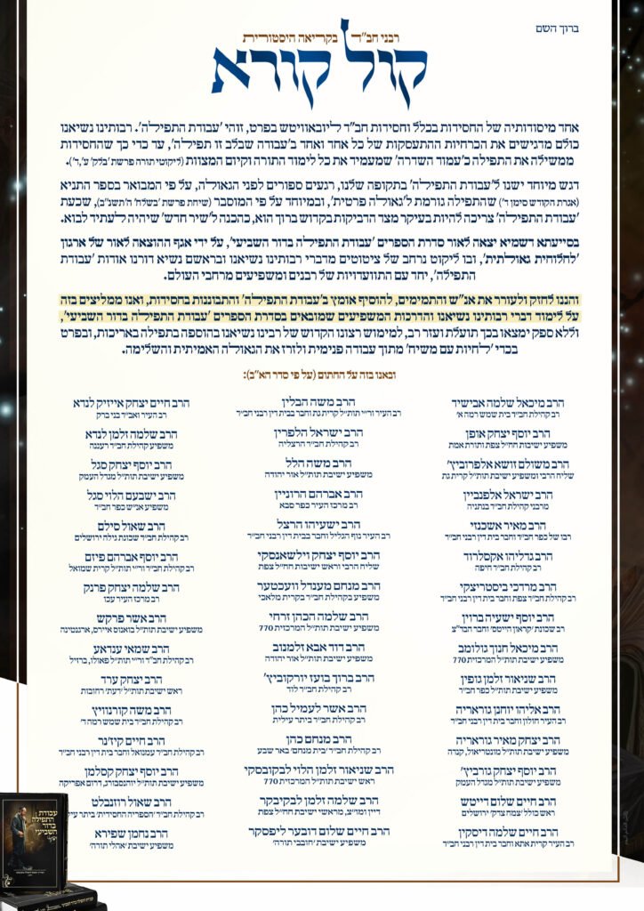 רבני חב"ד התאחדו בקריאה היסטורית: ללמוד בסט הספרים 'עבודת התפילה בדור השביעי'
