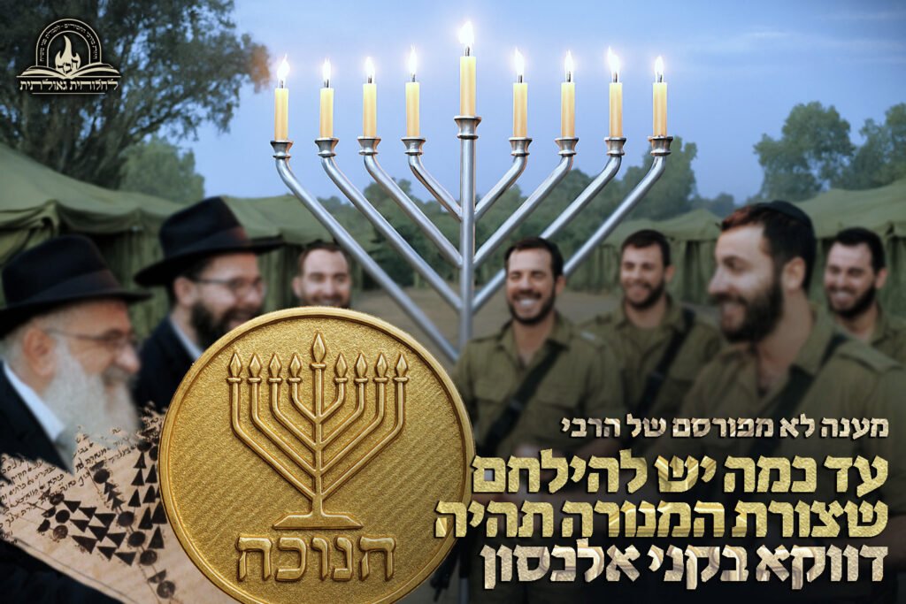 לרגל חג החנוכה העלו רעיון מעניין בהנהלת 'צעירי אגודת חב"ד' בארץ הקודש, להנפקת מטבע מיוחד בבנק ישראל בקשר עם חנוכה, אותו יחלקו לחיילי 'צבא הגנה לישראל', עם ציור המנורה בקנים אלכסוניים (כדעת הרמב"ם) וציור לוחות הברית מרובעות • בפנים: עורך אתר 'חב"ד לייב' מגיש את המענה הבלתי שגרתי שענה הרבי בכתב יד על ההצעה, שלא להילחם על צורת המנורה, אלא דווקא על צורת לוחות הברית • ומה הטעם לחילוק ביניהם? • לכתבה המלאה