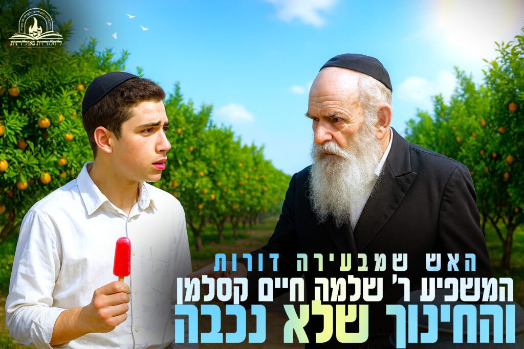 יום קיץ חם. יצאנו להפסקה בין עצי ההדר. ביד החזקתי אוצר קטן – ארטיק אדום פשוט, מים וסוכר, אבל בשביל ילד של שנות החמישים זה היה מעדן מלכים. עמדתי שם, מלקק את המתיקות הקרה, נהנה מהרגע. כשלפתע ראיתי אותו מתקרב – המשפיע ר' שלמה חיים קסלמן. ר' שלמה חיים לא היה סתם משפיע. כשנכנס לחדר, התדר באוויר היה משתנה. הייתה לו נוכחות רצינית שלא אפשרה שום זיוף. אהבנו אותו, אבל גם רעדנו ממנו.
