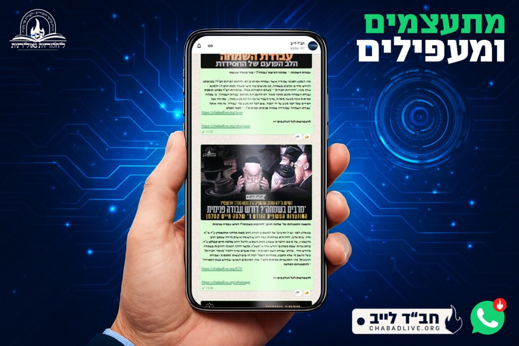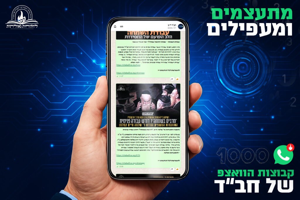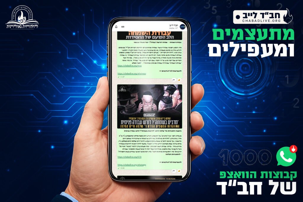 לאחר תקופה קצרה בלבד מהקמת ערוץ 'חב"ד לייב' וקבוצות התוכן באפליקציית 'וואטסאפ', כבר הצטרפו מעל אלף חסידים ומקורבים שנהנים מידי יום מכל תכני ארגון 'לחלוחית גאולתית' ואתר 'חב"ד לייב' • הקבוצות מאפשרות לקבל את כל עדכוני ותכני חב"ד ישירות למכשיר, בצורה מסודרת, שקטה ומרוכזת – יום יום. משפיעים ואנ"ש רבים ממליצים בחום להצטרף לקבוצות, הממלאות בתוכן חסידי מחזק ומעורר, שמוסיף חיות בעבודת ה' וענייני הגאולה • בואו נעפיל יחד! שתפו את הקישור לערוץ ולקבוצות 'חב"ד לייב' עם חברים ומשפחה, כדי שגם הם יקבלו את העדכונים החמים של חב"ד – ראשונים, ישירות למכשיר האישי • להצטרפות שלחו בקשה למספר: 972-54-683-2770 + או הקליקו את הקישור המצורף • לכתבה המלאה