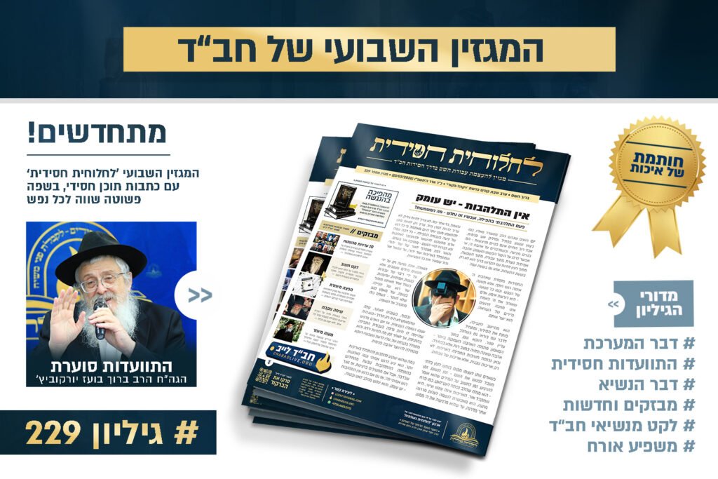 המגזין החדש 'לחלוחית חסידית' גיליון 229 • במרכז: התוועדות חסידית סוערת עם הגה"ח הרב ברוך בועז יורקוביץ' – רב קהילת חב"ד לוד