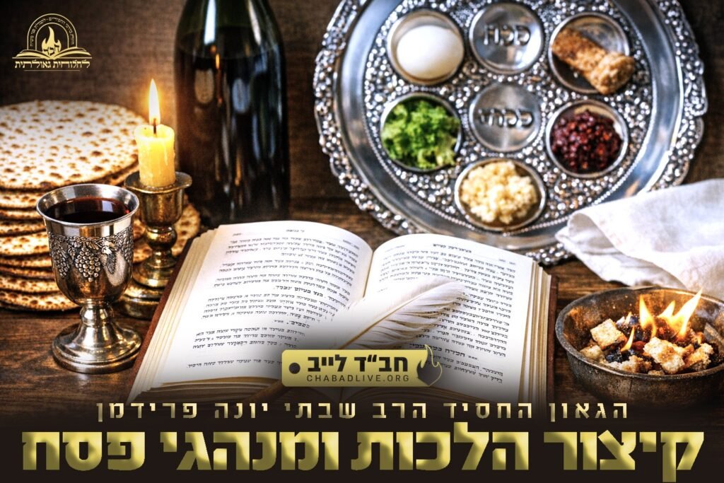 בעומדנו בחודש ניסן, מערכת אתר 'חב"ד לייב' שמחה להגיש לקהל הגולשים קונטרס מיוחד ובלעדי בנושא 'קיצור הלכות חג הפסח', בשילוב מנהגי חב"ד והנהגות רבותינו נשיאנו, מאת הגה"ח הרב שבתי יונה פרידמן – מורה צדק בקהילת חב"ד בצפת ומרבני הישיבה הגדולה בעיר • בתוך הקונטרס: לימוד הלכות החג, דיני בדיקת חמץ ושריפתו, קיצור מנהגי ערב פסח וליל הסדר על פי מסורת חב"ד, הלכות ומנהגים לחול המועד, ועוד תכנים חשובים לקראת החג • לכתבה המלאה