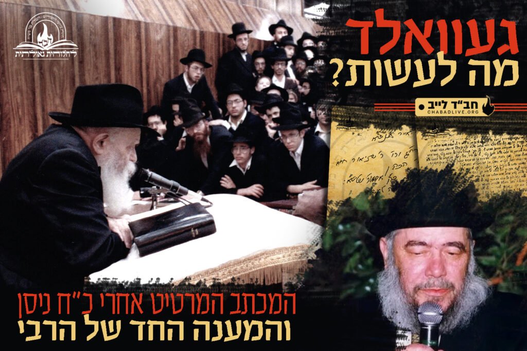 שיחת כ"ח ניסן תנש"א הכתה את עולם החסידות בתדהמה. המילים הבלתי נתפסות של הרבי – 'אני את שלי עשיתי.. מכאן ולהבא עשו כל אשר ביכולתכם' – הותירו חסידים רבים בתחושת אובדן דרך וחוסר אונים. אחד מאלו שלא יכלו למצוא מנוח לנפשם היה הרב חיים גוטניק ע"ה, מרבני חב"ד הבולטים באוסטרליה. כשבוע וחצי לאחר השיחה, בח' באייר, התיישב הרב גוטניק לכתוב לרבי מכתב שכולו זעקה אחת גדולה: מה הרבי באמת רוצה מאיתנו?