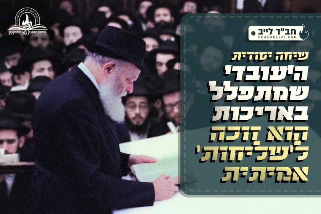 מדוע דווקא מי שמתייגע בתפילה באריכות הוא היחיד שמסוגל לצאת לשליחות אמיתית ב'חוצה'? • התוועדות נפלאה של הרבי, ובה מוסברים בהרחבה יסודות חסידות חב"ד