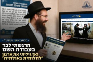 אל תפספסו: חסיד חב"ד חושף בגילוי לב אישי מטלטל את הקשיים והנפילות שהיו לו בעבודת השם, עד שנודע לפעולות ארגון 'לחלוחית גאולתית' – ששינו את חייו לחלוטין