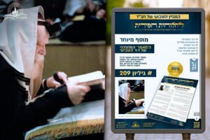 מגזין 'לחלוחית חסידית' מספר 214, שנועד להעצים את עבודת השם בדרך חסידות חב"ד • במרכז המגזין התוועדות חסידית מיוחדת עם הרב נחמיה סגל – משפיע ישיבת אור יהודה